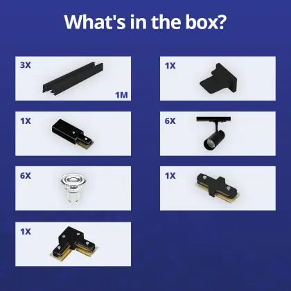 Bright Choice Complete Set 1-Fase Rail L 1 x 2 Meter Zwart | incl. 6x Spot + GU10 2700K 3W Dimbaar + Eindkap, Voedingsconnector en L -Verbindingsstuk