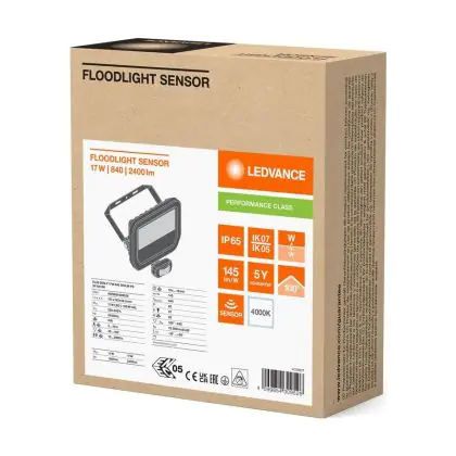 Ledvance LED Breedstraler Aluminium Zwart 17W 2400lm 100D - 840 Koel Wit | IP65 - Bewegings- En Lichtsensor - Symmetrisch