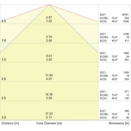 De lichtopbrengst (Lumen), geeft weer hoe krachtig het uitgestraalde licht is. Dit is belangrijk om te weten om de juiste sfeer te creëren. 0 tot 400 Lumen is bij uitstek geschikt voor accent- of sfeerverlichting. Een hoger aantal Lumen is, afhankelijk van de grootte van de ruimte, beter geschikt als ondersteunende- of basisverlichting. Heb je plafonds hoger dan 4 meter, dan is een lichtopbrengst van minimaal 8000lm aan te raden indien heldere verliching gewenst is (vb. in werkomgevingen).